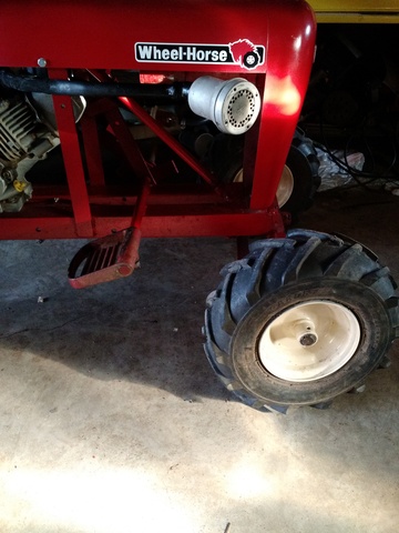 I think the Rustoleum is a closer match to the Wheel Horse almond, The IH is quite a bit darker. If you use the right amount of thinner and hardener most good tire shops will not mess up the paint.