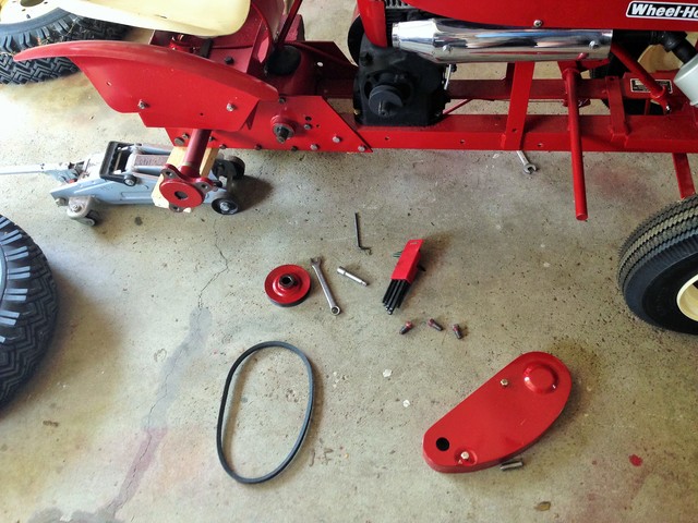 Lane Ranger 11,680 #219 Posted November 4, 2016 Ok finally I have a 1958 RJ that is doing what I wanted it to do! I can not thank Steve (Stevasaurus), Bob (Racinbob) , Jake and Doug Kuhn, and many others for the assistance, insights and suggestions as we entered into redoing these transmssions and this 1958 RJ I bought from Autin McCoid in Underwood, Iowa this January. Thanks to Paul (oldredrider) for the 4 HP Kohler that I put on this just a couple of weeks ago. I changed my Kohler as the motor I wanted to use was just not getting the amount of spark it needed -although it is a good motor I intend to use. I have one more RJ transmssion to rebuild, one that Steve rebuilt that is in this RJ I reworked and we asssited two other RJ rebuilds with parts, Racinbob is going to do a demo three piece RJ/Suburban transmssion for shows and demonstrations with some parts we traded for a good outer RJ/Suburban case. I was able to figure out my RJ brake band was the problem with me properly clutching the transmssion to change geara and also allow me to fit the proper drive belt guard on the RJ (after I made an alternative belt guard that worked but just wasn't wheel horse ) ! So I have the After shots first and the Before shots afterwards for your viewing. It may never reach a 10 rating out of 10 points but a good 7 or 8 and another saved RJ is an accomlishment to be proud of and she runs great. 3 Share this post Link to post Share on other sites