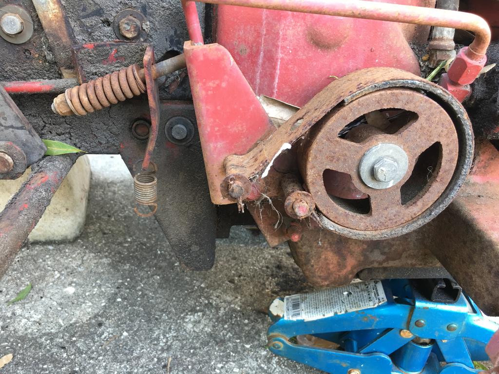 So I have this parts 418-A I have been sitting on till I got the chance to start working on skittles again. So today I got out and started stripping all the brake linkage and motion control assembly off it. I started eyeing it up and it looked so similar in dimensions to the 418. I figured lets see what fits and doesn’t fit. I took a saw and cut out the side plate for the tunnel, ground some threaded nuts off the back and laid it up next to the side panel on skittles. It is unbelievable that 2 tractors, different models and transaxles, 15 years later the parts would fit in the same holes.  I had to drill out one hole for the bushing but the brake cam, motion assy and the control rod from the hydro cam to the lever all bolted right in. Have to cut the “happy” slot in the side panel but most everything else is a direct fit. Will have to straighten and thread the brake pedal rod and use a clevis on it instead of the 90* bend and cotter pin. Ran out of daylight.