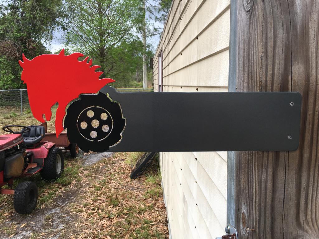 Nothing special about the sign,    just your typical laser cut piece of steel with perfectly symmetrical spacing of indexed holes with minute steel holding center hub detail, including recessed placing of indexed support screws with a flawless application of paint......can't say as I'm impressed ($%#&^%$%#*) no big deal, ($%#&%*&^%) See this kind of thing every day.... I'm not humbled or anything.............