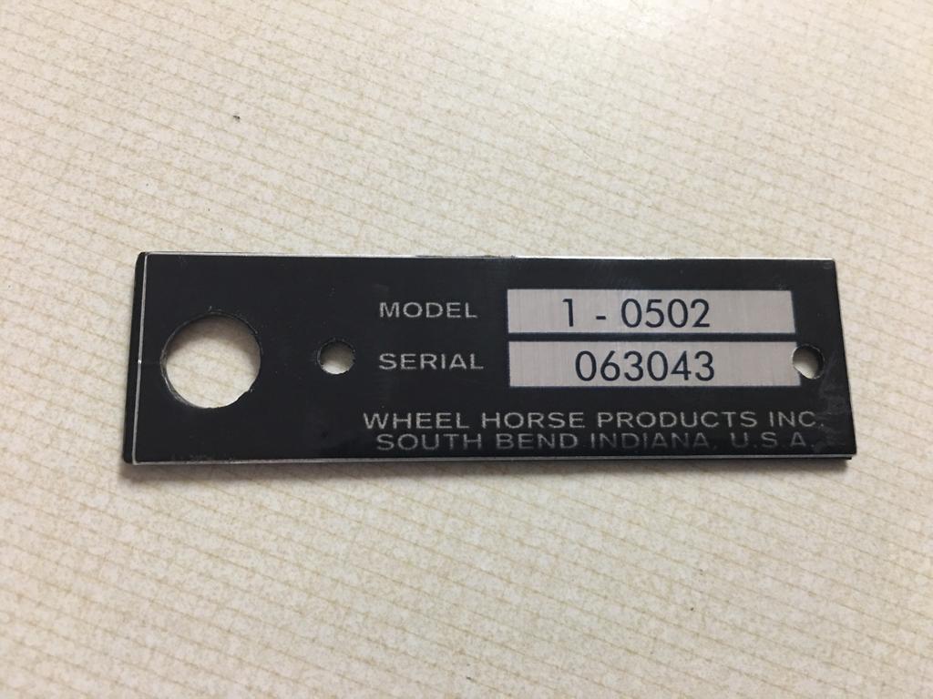 Well since my serial number was non existent and you could just barely read the model number, I figured I would make a new one. You wheel horse gurus will notice the serial number is all wrong. Well since my Dad got me into this hobby, I used his birthday for my serial number. I ordered a new tag decal from Terry and made a new tag from 1/16” steel plate. My son had it powdercoated at work and this is what it came out like. Terry’s decals are top notch. Can’t say it enough.