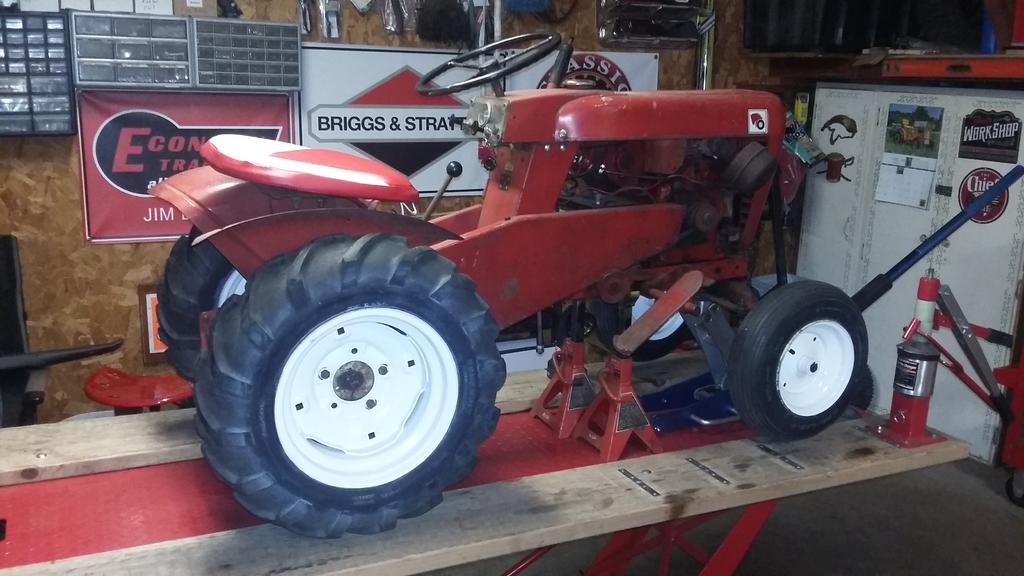 ohiofarmer 3,383 #34 Posted March 18, 2024 On 5/20/2017 at 7:39 AM, Shynon said: Harbor freight high lift motorcycle lift and work table in the background with storage underneath. Made a bolt on platform to lift tractor high enough to put on the table, also doubles as a worktop. On 5/20/2017 at 7:39 AM, Shynon said: Harbor freight high lift motorcycle lift and work table in the background with storage underneath. Made a bolt on platform to lift tractor high enough to put on the table, also doubles as a worktop. This is a great setup. I keep telling people that it is my most used tool in the shop. I have three of them, However, they are recalled because of the fact that there can be failure of the lift frame. To get the recall, you return the jack mechanism and keep the rest.. The thing will lift a balanced load but the problem comes with lifting one of our tractors cannot be balanced from the frame. strap down the front especially . The load twisting on a single point of two inch tubing is a problem that can be helped with beefing up the connection with heavier stuff. it also sags a bit front to back. I have thought that re-engineering that stuff as a solution, but with a rig like your table,, you have a good balance of safety. i have also thought about copying the design to an engine hoist platform and that would already have half the engineering done. I have added weight to the front of tractors on the lift especially when changing front tires. A short frame with a smaller engine will fall off flipping backwards when you remove a tire. Even when not being used as an equipment or motorcycle jack, i still would be pleased with mine. I have used it in a kitchen to lift a row of upper cabinets to install and as a general purpose shop and welding table. Keeping all three of mine. don't suggest that i get the recall and buy another jack. Too tempting. A motorcycle shop I know of uses his main bike jack and puts bikes on a table to work on them. Bike customers for him at least kept stringing him along and there would be a bike on a lift occupying space. i suggested to him making roller tables and when the promised payment to buy parts did not come in, rent of five to ten dollars a day would accrue.It worked for that and worked in general for his own project bikes. 1 Share this post Link to post Share on other sites