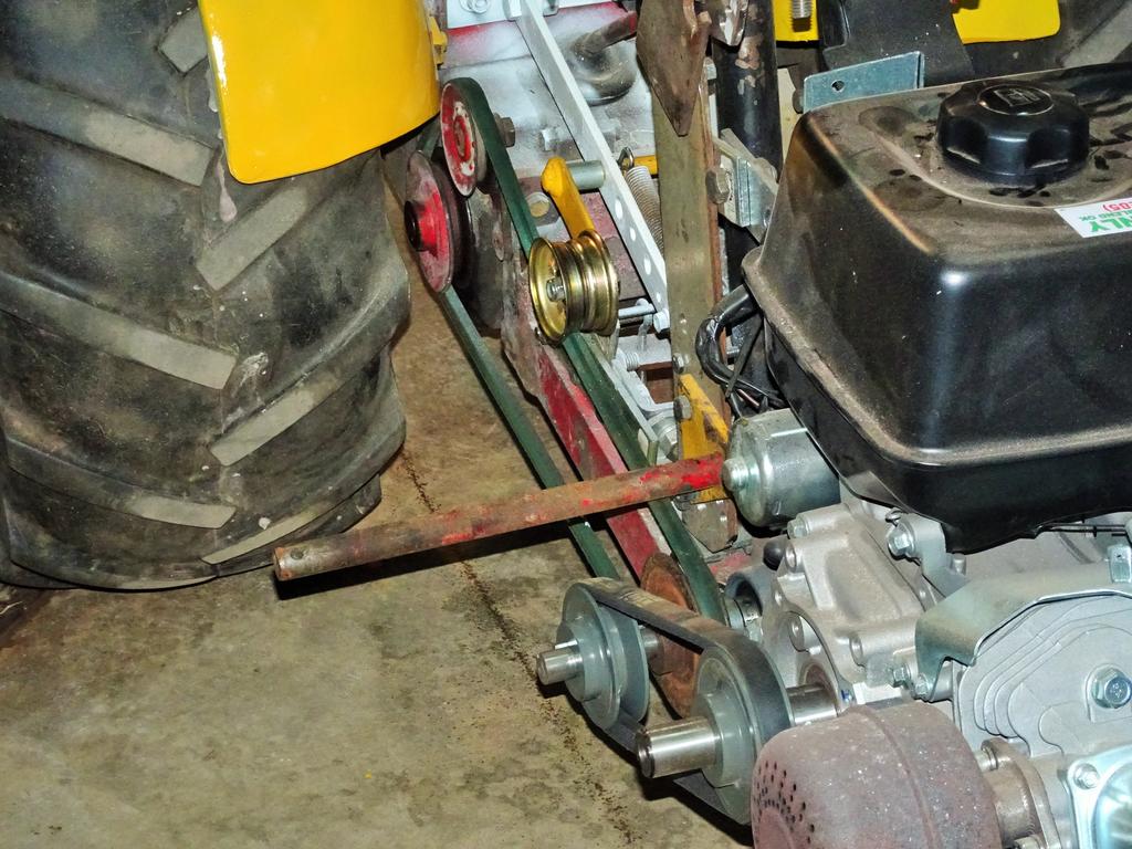 Still playing around with the belts. Can't shift with them moving. The long belt is 1/2" wide and could be the problem''. IF a 3/8 wide belt does the same thing, I'll just get a go kart centrifugal clutch