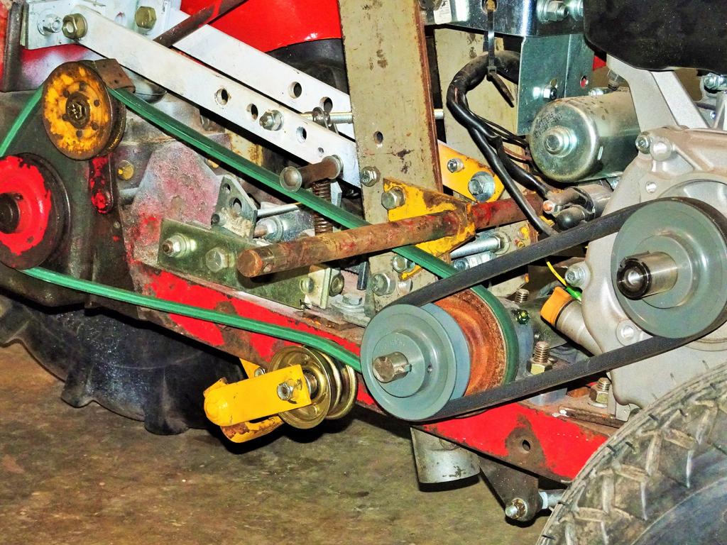 Ultra Sunoco and two pulls and she's alive, but not moving. Wrong belts I believe. The long belt with the WH pulleys is 1/2" wide. The engine pulleys are wider and I used a 5/8 wide belt. In all honesty of the many belts I now own, these were the right length so I gave them a try hoping for the best. Epic fail because there was still power with the clutch pushed in.
