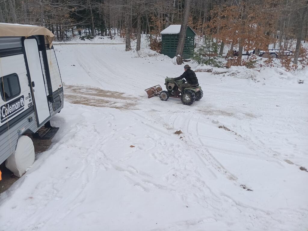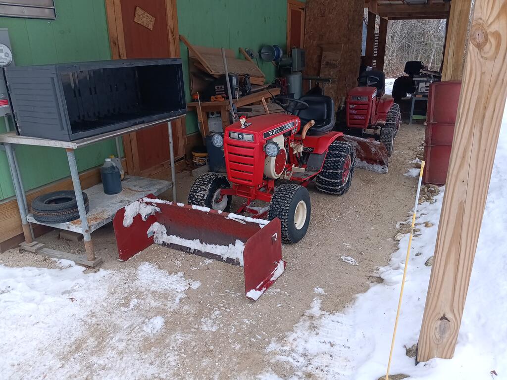 ebinmaine 75,643 #25103 Posted 1 hour ago Swapped a few things around here. Workhorse GT1800 outta the workshop space. That's staying by the firewood until @OldWorkHorse gets a day to stop by. After Millie was done plowing snow she went in the workshop. Millie needs both belts. S/G and main drive. Gotta diagnose why it's already eaten a main drive belt. May be normal usage. May be a burr on the belt guard. Also did some experimentation with the Super Scooper on the front of my '75 C160 Automatic. I've posted a video in the Implements Section. Got The Ugly Bruce tractor out for a bit to play in the snow too. 1 1 Share this post Link to post Share on other sites