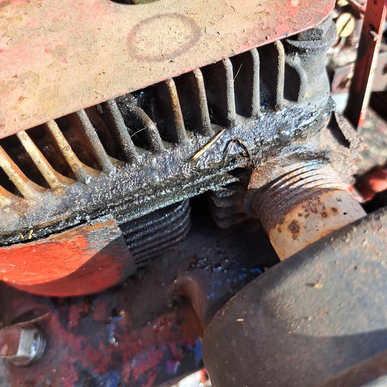 WHX?? 52,850 #24833 Posted 6 minutes ago Gave a 867 a bath before the washer goes nighty nite for the winter. What a greasy pig!!!! Pullstart brought this over from MI and I know fer sure we overpaid. Was having seller's remorse from sending another one back to Shynon but I needed his tool box worse. The crap was two inches thick on the motor & frame I kid you not. Spread the stuff out on the blacktop and walla ... seal coated. Never even tried to start it but probably wouldn't have taken much. Head gasket is blown among many other things. Nothing cobbled too bad that can't be reversed & strait sheet metal. good ags & orginal fronts in good shape. No sure what to do with it. Mechanical resto is right up my alley but missing lots of paint and don't think a touch up of rusty primer will do or look right. I've got a freshened up 181 shelf motor that is gonna go in it fer sure so partially dissembled it on the splash pad gut to get more crud off. 1 Share this post Link to post Share on other sites