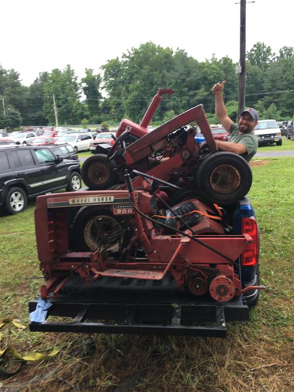 Pullstart 68,521 #12 Posted June 24, 2018 How else should a man take four horses for a ride at once? I made it home without a hiccup, but I still think I could have fit more! @elcamino/wheelhorse I don't know if I crossed paths with you, but I need to thank you for the Predator engine that you gave @19richie66, who gave it to me. It's in the load under the 656's nose. All these tractors were complete before loading, and thanks to @dells68 I even went back to the show for #4, took it apart and loaded it piece by piece. The vendor helped me get the trans/wheels/tires in with his truck mounted crane. There was barely room for a fart inside the truck either! On the way, stopped by to visit @ACman and it was great to finally spend some time with ya Jeff! For anyone who hasn't made it to a show, you don't know what you're missing. I'm glad I forced myself to book the room back in January/February... my "what's in your mirror?" pic 2 2 Share this post Link to post Share on other sites