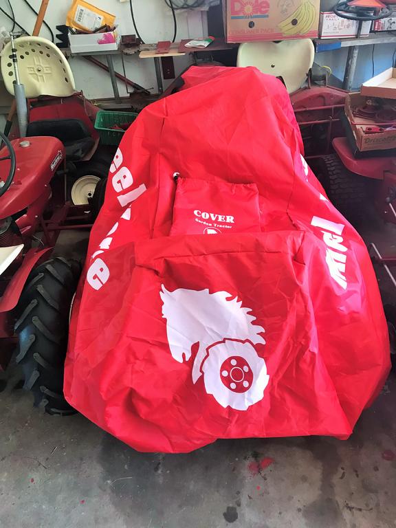 Lane Ranger 11,680 #1 Posted July 8, 2018 FYI Red Square Members: Glen Pettit is selling a very Nice Wheel Horse Custom Tractor Cover fitted for the C Series and 300 Series tractors . He asked me to post pictures of his new Tractor Cover on Red Square. Mine is placed on a 1975 Wheel Horse B-80 so a little more room in the cover! My 314 with tiller is not at home right now so could not tray it out on a 300 Series Tractor. These are verty well made covers with Horse Head Logo and Wheel Horse printed on each side. Glen is selling these for $55 and they are well worth it. Also includes a Bag to store the cover. Glen gave me an update on his health and rehabilitation - he is hoping to be able to walk and drive again by September. 3 1 1 Share this post Link to post Share on other sites