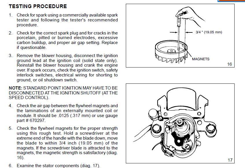 Howie 900 #15 Posted July 28, 2018 The charging coils have absolutely nothing to do with this engines firing. It needs to disregarded while trying to diagnosis this. It has to be in the coil, points and condenser. Magnets could be weak I suppose. A bad set of points, a bad condenser. Don't know if you have original Tecumseh parts or aftermarket stuff. Some of the aftermarket parts have not been able to get a spark. Share this post Link to post Share on other sites