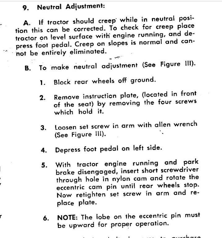 Are you talking about the neutral adjustment (meaning it doesn't creep when the motion control is on neutral?  If so See below.  If the control lever itself moves too easily then look at figure IV.  (you need a 1-1/8" wrench to loosen the lock nut  (it cannot be too thick I made one out of on old blade and it works great for mower spindle nuts also)  .a 5/8" open end turns the threaded shaft .