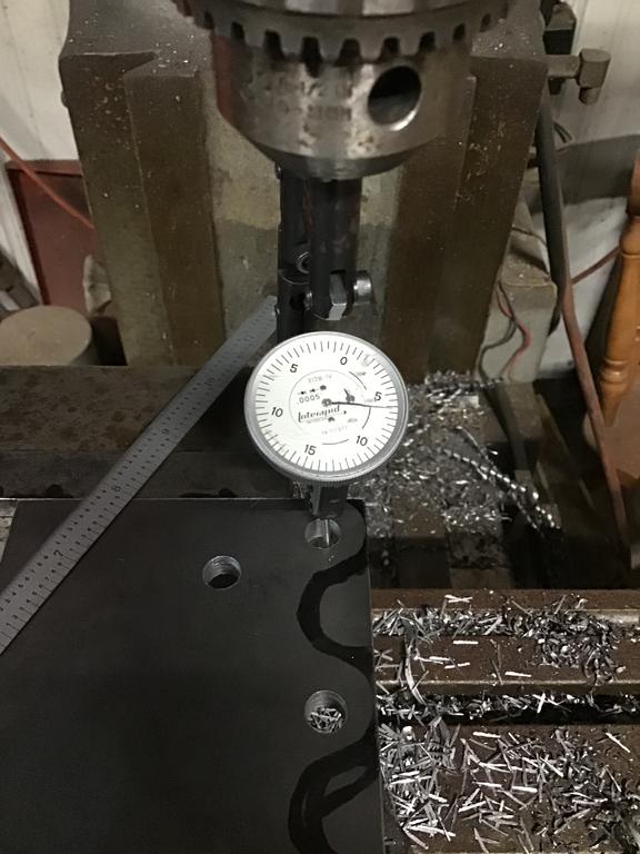 I squared up my work piece, then found an edge and drilled my pattern.  I need to clearance for the sickle bolts and then I can try out for fitment!