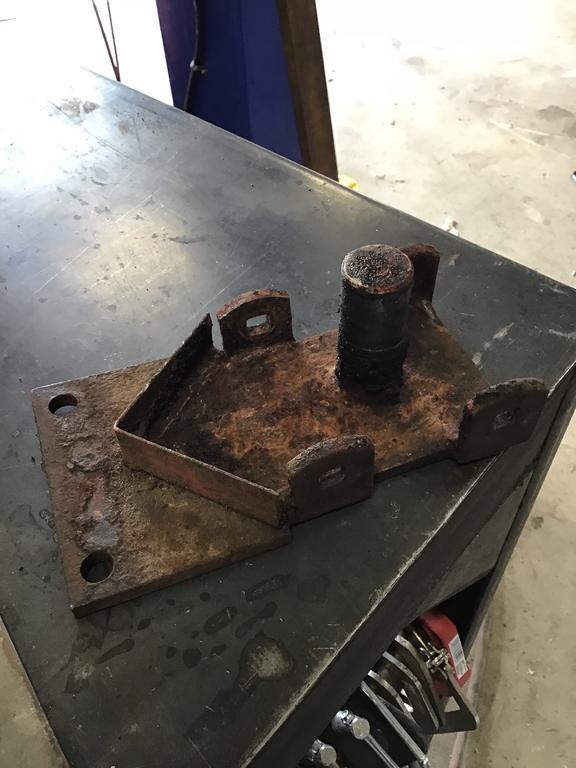 So this bottom plate is bent and needs to be straightened.  It will also need drilling, welding or both to adapt the wider sickle mower from the Jari machine.  I just wish I knew how they assembled this with the nuts so far in there!  No wrench I have will fit the nut with the counterbalance in the way.  If Anything, I’ll weld a captive nut in the furthest holes upon reassembly!