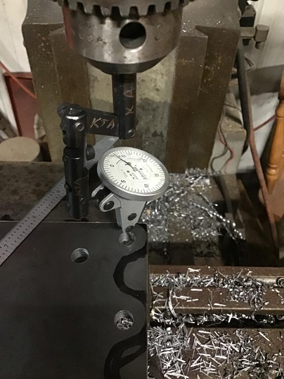 Using a dial indicator to pick up a hole...  the readout doesn’t matter what it is, as long as it picks up 3 “sides” of the hole the same.  For this instance, a couple thousandths is good enough!