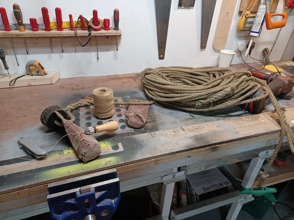 Dan.gerous 2,696 #4079 Posted May 8, 2022 Quick bit of canvas work today repairing our heaving line bags. These small ropes with a weighted canvas bag are our messengers for the big ropes that hold the ship in dock. You throw this ashore attached to the bigger gear - much easier than trying to throw a 4 inch rope any distance! The bags land from quite a height and tend to split open after a while. Will make up some new ones when some free time comes along. I'm one of the very few British seafarers that can still sew - sad days! 7 Share this post Link to post Share on other sites