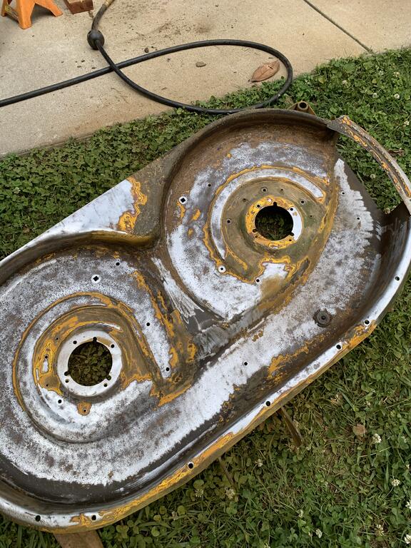 Horse Newbie 7,398 #5658 Posted May 20, 2023 Finished cleaning the underside of the Cub deck, prepped for the POR-15… I achieved the white powdery look on the metal, so I went for it. Now to go see what my neighbor Grady is doing… 4 3 Share this post Link to post Share on other sites
