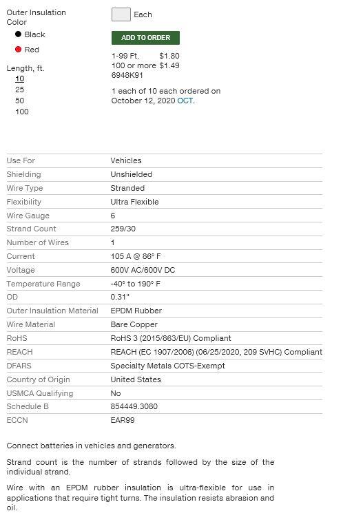 pfrederi 19,264 #2 Posted February 22, 2021 I am using this stuff from McMaster It is super flexible note the strand count. Very fine individual strands. i ordered 6 ga Blk and Red but they the red coil I received was 4ga. 1 2 Share this post Link to post Share on other sites