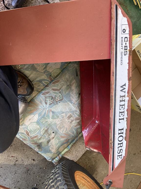 SylvanLakeWH 29,789 #22 Posted May 2, 2021 Today’s progress… Ordered decal set from @Vinylguyfor the C-85 and my new to me Agrifab but Wheel Horse Wannabee trailer!!! Hood sanded. Ready for primer. Decals came off like a breeze using hair dryer and s l o w l y peeling them off just behind the hot air… Seat down to metal… evaluating possible use as old style metal seat, with some anti-hemorrhoid bolt rearrangement… Possible metal fender pan coming my way from @cafoose via @pullstart Trucking from the Big Show… 3 2 Share this post Link to post Share on other sites