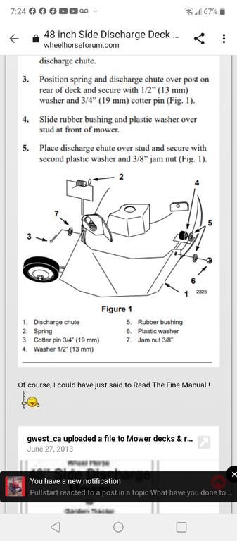 Could someone maybe post a hand drawn sketch of how the rubber bushing, spring, and washers go to mount the deflector on my 48 inch SD deck ?