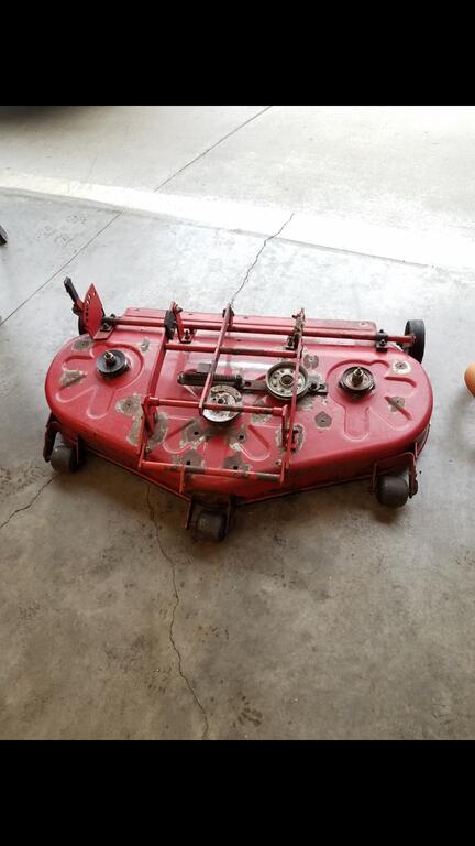 Lee1977 7,396 #4 Posted February 2, 2022 I found the deck or one similar "05-42RY02" 1991 Its been modified to fit the tractor. It came off a machine that had the engine mounted on the back, might have been a small residential zero turn or rear engine rider. I can tell that much by the belt drawing. There was original a tab welded on right side of the deck just past front hanger, the four bolt holes was for a front mounted belt tightener. Share this post Link to post Share on other sites