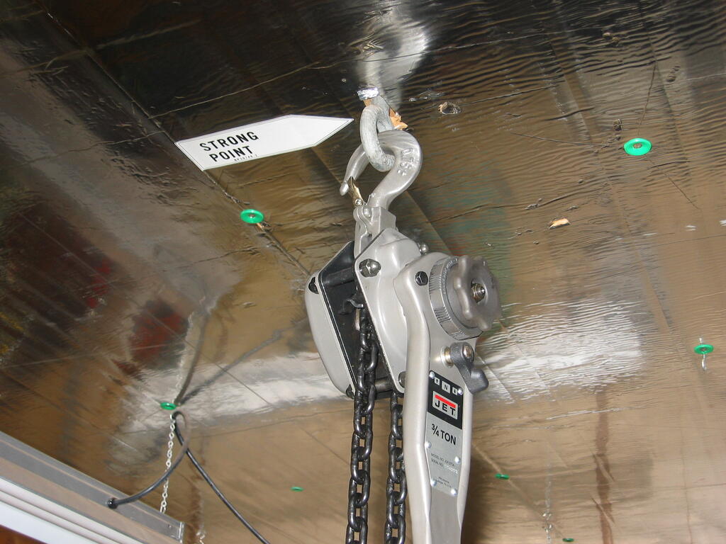 ebinmaine 75,769 #25 Posted February 14, 2022 (edited) As a partial solution and part of my thought process I hung my chain falls in the basement workshop temporarily. I wanted to have both of us be able to get an idea of where it would sit. The hoist itself would be out of the way for the most part because it'll live right where it is sitting now, up against the pegboard wall. For the chain falls bracket fastening, I think I've come up with a good solution. A 2x6 board above the 10' long rail will be 12' long so I can grab an extra joist. Three 4" long (#10 deck screws or 1/4" lags) in every joist. Then, to hang the rail I'll use five total brackets with bolts that go through the 2x6. The deck screws should have a real-world pull out of somewhere above 600 lb each. That should give me a pretty fair safety margin for lifting several hundred pounds. Thoughts comments suggestions questions as always are welcome.... Edited February 14, 2022 by ebinmaine 1 Share this post Link to post Share on other sites