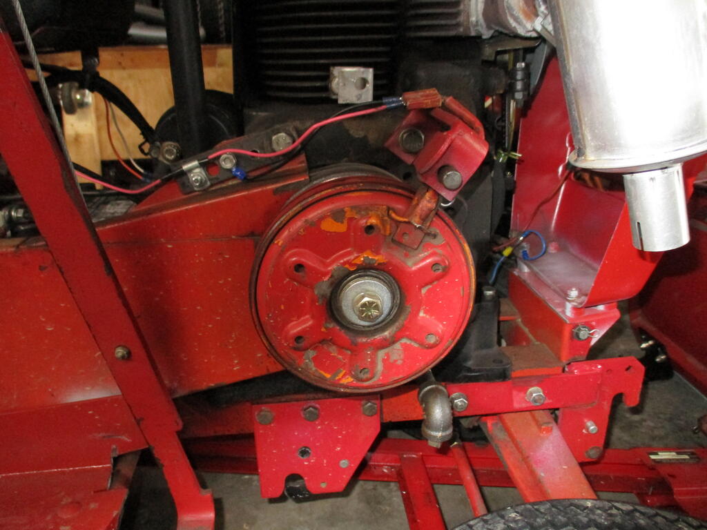 My daughter was using the Wheel Horse rider to mow, I was push mowing. She drives over to me and says, "Dad, the blades aren't turning." I look at the mower, she's got the blades engaged (lever forward) but nothing is moving. I disengage the blades, and re-engage... nothing. No movement from the belt nor clutch. Then I notice the smell, and look closer, the belt is so hot is melting on the clutch. Or rather, the clutch is so hot it's melting the belt. Melting occurred.