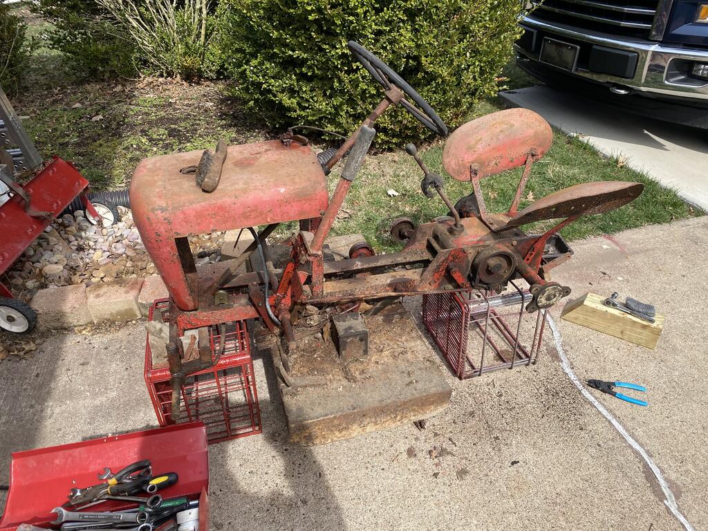 Lane Ranger 11,675 #30 Posted March 31, 2022 I have restored or reconfigured several RJs over the last 15 years. But one stands out as a bigger job than others. Still not 100% done but it will be soon. I bought an RJ that was pretty rough in March 2021 from a guy moving that needed to clean out his garage. He had bought RJ to restore but never got around to doing it. I reworked, frame, hood, transmission and put a four hp Kohler from my supply of motors. Put a chopped hood on at first and as AMC _Rules said just did it cut it! So I had two old RJ hoods melded into one good one. Not this best of redos but another RJ save! 5 6 Share this post Link to post Share on other sites