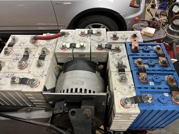 I’m using lithium batteries from one of the electric cars I took out of service, 16 100ah on the bottom. Plan is to add another 32 40 ah to top from electric motorcycle build. Smaller batteries in parallel for 80ah. I’m going to use a/b switch rather than connect dissimilar batteries.