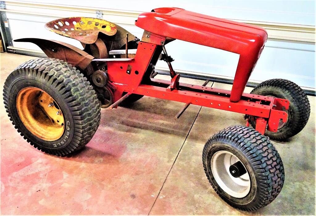 giddyap 1,574 #30 Posted August 30, 2022 @ebinmaine The photos grouped in pairs helps explain why I didn't know which of the two models I was going to build. 300/400 tower vs round hood tower on a large frame. Short vs long hood. But it was the more upright angle of the steering column that I liked on the black hood and so became It's my thing #5 It's my thing #6 was built on a 312-8 (last pictures) to utilize the round hood parts. The Magnum would not fit under the hood so I went with 212 Predator. This time around a universal joint was used to make the steering column appealing to my eye. But and a big but is the correct tower did not have a lift lever and I want it to push snow. I even put 22s on it so the blade would lift higher. Without the round hood tower it fails my goal to look like a large frame 702 clone. 4th picture is my favorite 3 Share this post Link to post Share on other sites