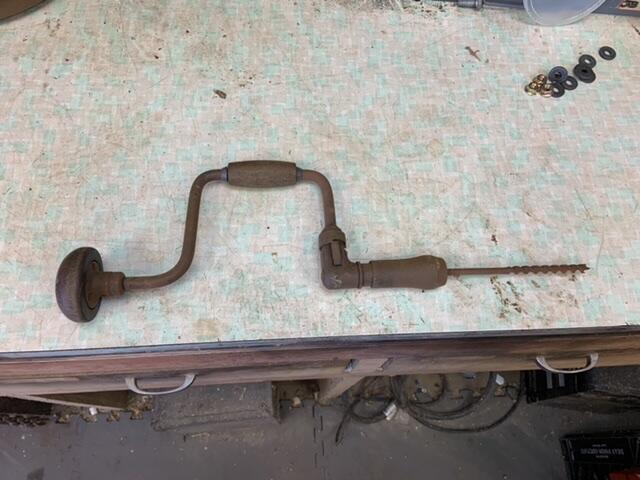 formariz 12,352 #1 Posted August 2, 2022 The carpenters brace is a tool most of us have seen or handled at one time or another but quickly put it aside as an obsolete tool from the past. From the past yes , obsolete no, quite the contrary. They are literally found all over. Flea markets, basements , scrap metal bins, rusty tool boxes, they pop up at anytime. They are inexpensive and with the exception of a few rare types can be bought for a few dollars. As far as woodworking goes, the brace coupled with its soul mate, the auger bit, has no peer in efficiency, reliability and quality in hole drilling. No power cords, or batteries needed. They can be used anywhere at any time under any circumstances. Carpenters braces come in many different types and sizes. Size is usually designated by “sweep”. A brace with a 10” sweep will measure 5” from its center line to its outer center handle therefore having a rotation of 10” in diameter or the so called sweep. Ten inches is probably the most common but they come from six to sixteen inches. The larger the sweep the more torque one obtains in boring large holes. The smaller sweeps will be more accurate due to their short turning radius but require more effort. They excel in driving screws and drilling smaller holes. The smaller or faster sweeps are usually quite a bit more expensive since they are not common. So are the largest sweeps. 6”,8”,10”&12” sweep braces They are tools simple in design and principle. Most are of the ratchet type but there are a few that do not have that feature. Ratchet feature is very useful specially when boring a large diameter hole since not only it is hard to make a full rotation, doing so with the effort needed will knock brace off plumb making an oblong hole and possibly stripping the wood at the auger’s screw tip. Ratchet also makes them very handy in their screw driving ability Ratchet mechanisms have forward , reverse, locked or free turning. Common improved ratchet mechanism on left and 140 year old version on right . Old version totally superior to improved version. Unlike that one it also has a free turning feature. There are numerous variations of it specialized for certain applications or functions making them even more versatile. However regardless of brand or age they all function the same way . Very first ones were made out of wood, and did not have a chuck. The chuck and the ratchet mechanism are actually the only parts of them that changed due to improvements over the years. Some of those so called improvements are actually much inferior to earlier designs. Like everything else just easier and less expensive to manufacture. Chucks are usually very simple. A set of two jaws inside a turning cylinder. Jaws are held together by a spring in a V configuration. As cylinder is turned clockwise jaws are tightened. The important part is the interior of the jaws. They are grooved and tapered to specifically hold the unique end of an auger bit. With the exception of some older designs they are not very good at securely holding a plain round or hexagonal shaft . There are however modern braces that have three and even four jaw chucks designed to securely hold bits with round or hexagonal shafts and with very small diameters. Unfortunately for them since they are modern tools they will not make their way in here. Common chuck on left and again 140 year version on right totally superior. Unlike new versions old version will securely also accept round and hexagonal shaft bits. All augers regardless of size fit well in it. Not so in all new versions. Adapter I made to use round or hexagonal bits in brace. Made from a regular drill chuck and a cut off from an auger. Takes a little bit of practice to place augers correctly in the chuck. That is specially so with the smaller diameter bits. They have a tendency to wobble if not in the correct spot. When it comes to fitting correctly inside the two jaws the relationship of the auger’s tapered end to its shaft is critical, and not all augers are correctly proportioned. Also not all jaws are adaptable to all augers. Ideally jaws should tightly grab not only tapered end but also with its upper part tightly grab round shaft equally. This is a challenge with the smaller augers. One has to move it up and down within jaws to find the right or the best spot. With the larger ones this is not a problem. This is one instance where older chucks of different designs were better than newer “ improved “ ones. inside of jaws tailored to receive tapered shaft tapered shaft fits on interior of jaws preventing it from turning within chuck while being used. when tightened upper jaws should also grab round shaft securely keeping auger from wobbling. On many smaller augers one has to find sweet spot by moving bit up and down within chuck . If used on a bench the best way to use a brace is to place one’s left hand on top pad( handle) then rest one’s forehead on the back of that hand, turning then brace with right hand. A few very important things happen when used this way. With a little practice, placing of forehead on top of hand on pad pretty much automatically sets brace in a perfect vertical position due to your stance and how your head is centered on your body and such keeps itself vertical. If off slightly as you turn the brace with your right hand making a full rotation you will notice immediately that you are off and how by the relationship of rotation against the horizontal surface of bench. This method also keeps brace in that position as you crank it. Would you just use your left hand on the top pad, as you crank brace it will wobble out of plumb by it. Your left arm will not hold it steady, your head will. Since auger has a feeding screw no pressure is required for bit to bite into wood. It is self feeding. When boring holes 3/4” or larger, specially in hardwoods it just takes too much effort to crank full revolutions. Even if possible the effort required